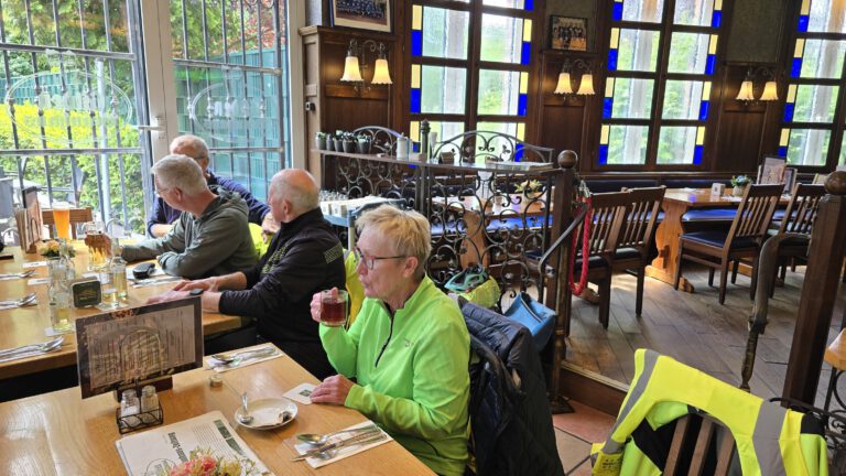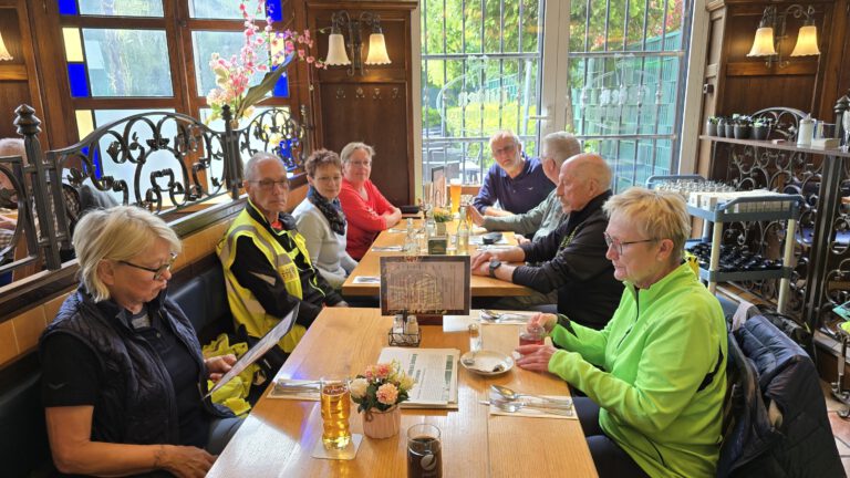 Bei angenehmem Radfahrwetter versammelte sich 10 Radbegeisterte. Pünktlich um 10:00 Uhr setzten wir mit der Rheinfähre auf die andere Rheinseite über. Von dort aus startete unsere Tour rheinaufwärts Richtung Köln-Mülheim. Die Strecke führte uns malerisch am Rhein entlang, durch die Kölner Stadtteile Porz, Poll und Deutz. Der gut ausgebaute Leinpfad ermöglichte ein entspanntes und zügiges Vorankommen, während wir die vorbeiziehende Landschaft genossen. Unser Ziel war das Gilden Brauhaus in Köln-Mülheim, wo wir gegen Mittag eintrafen. Die Einkehr im Brauhaus bot eine willkommene Gelegenheit für eine Stärkung und ein kühles Getränk in geselliger Runde.